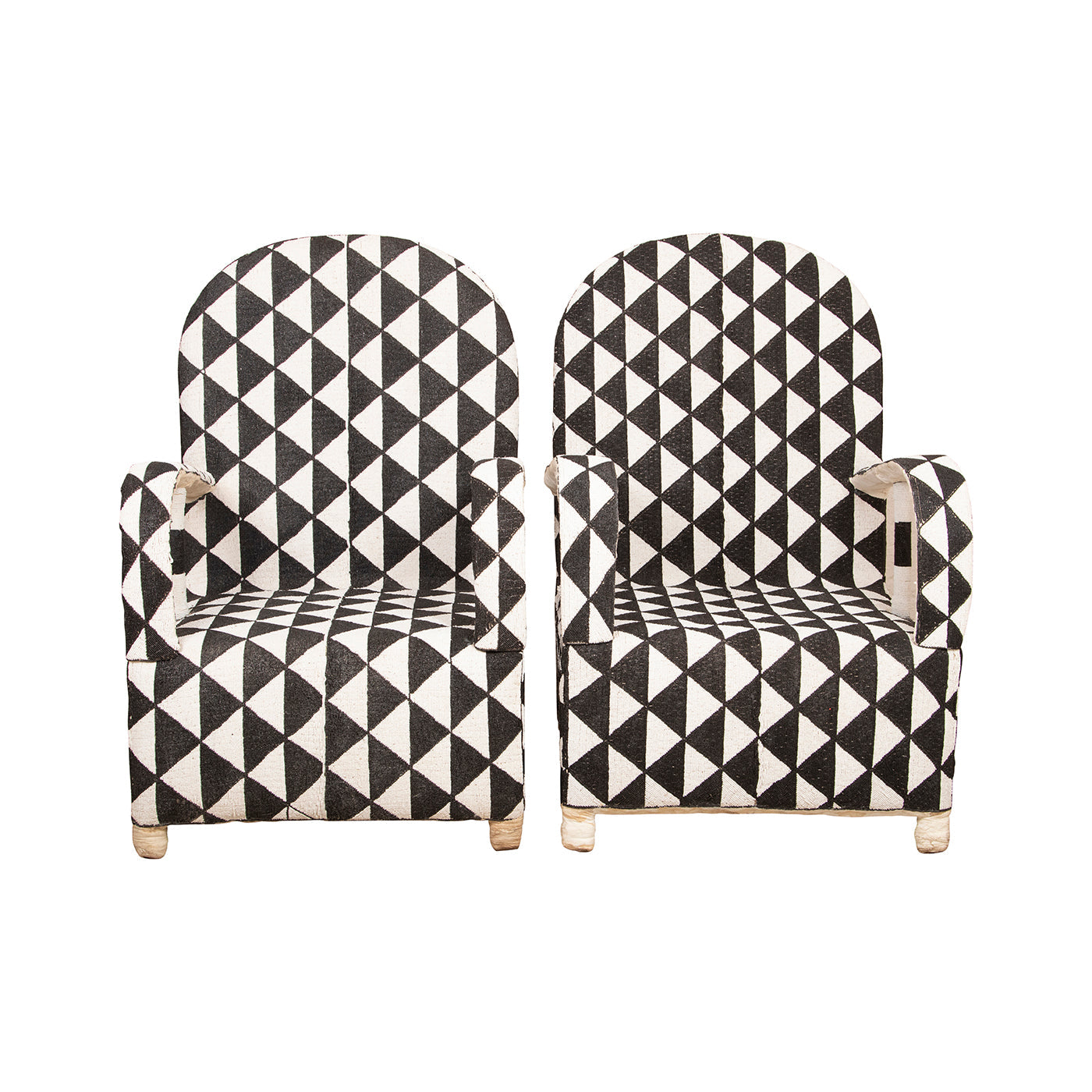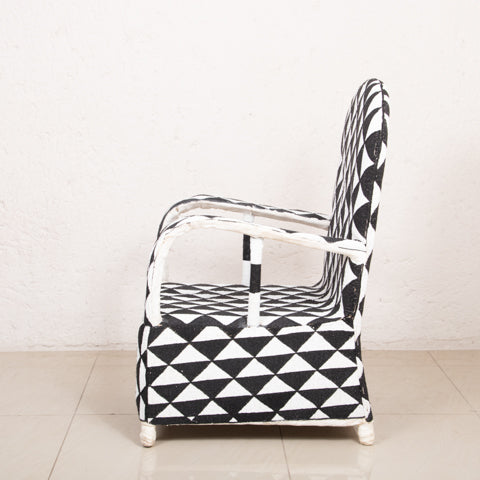 Yoruba Beaded Arm Chair Set of 2 | Black & White Triangles