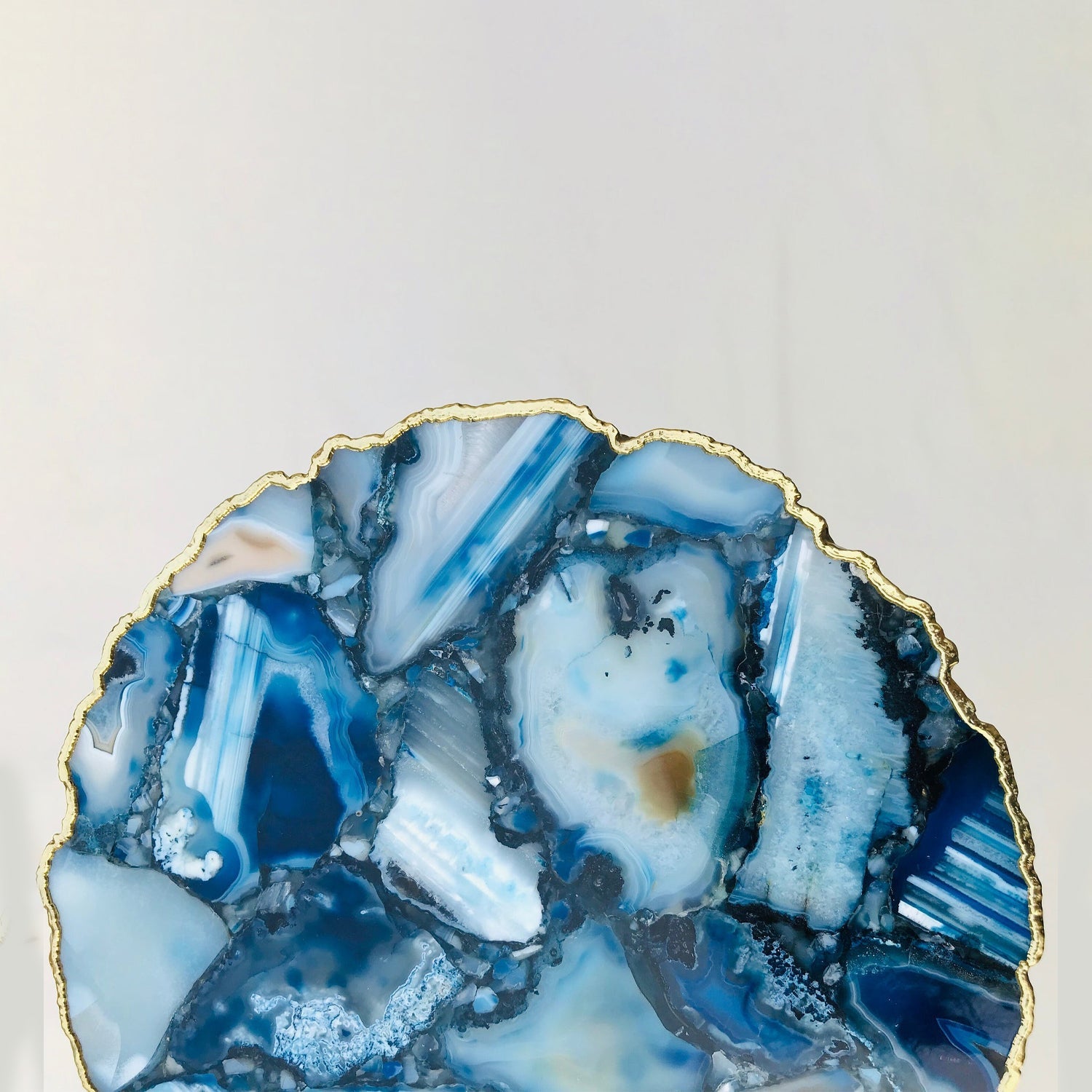 Handcrafted blue agate with brass-plated iron hardware