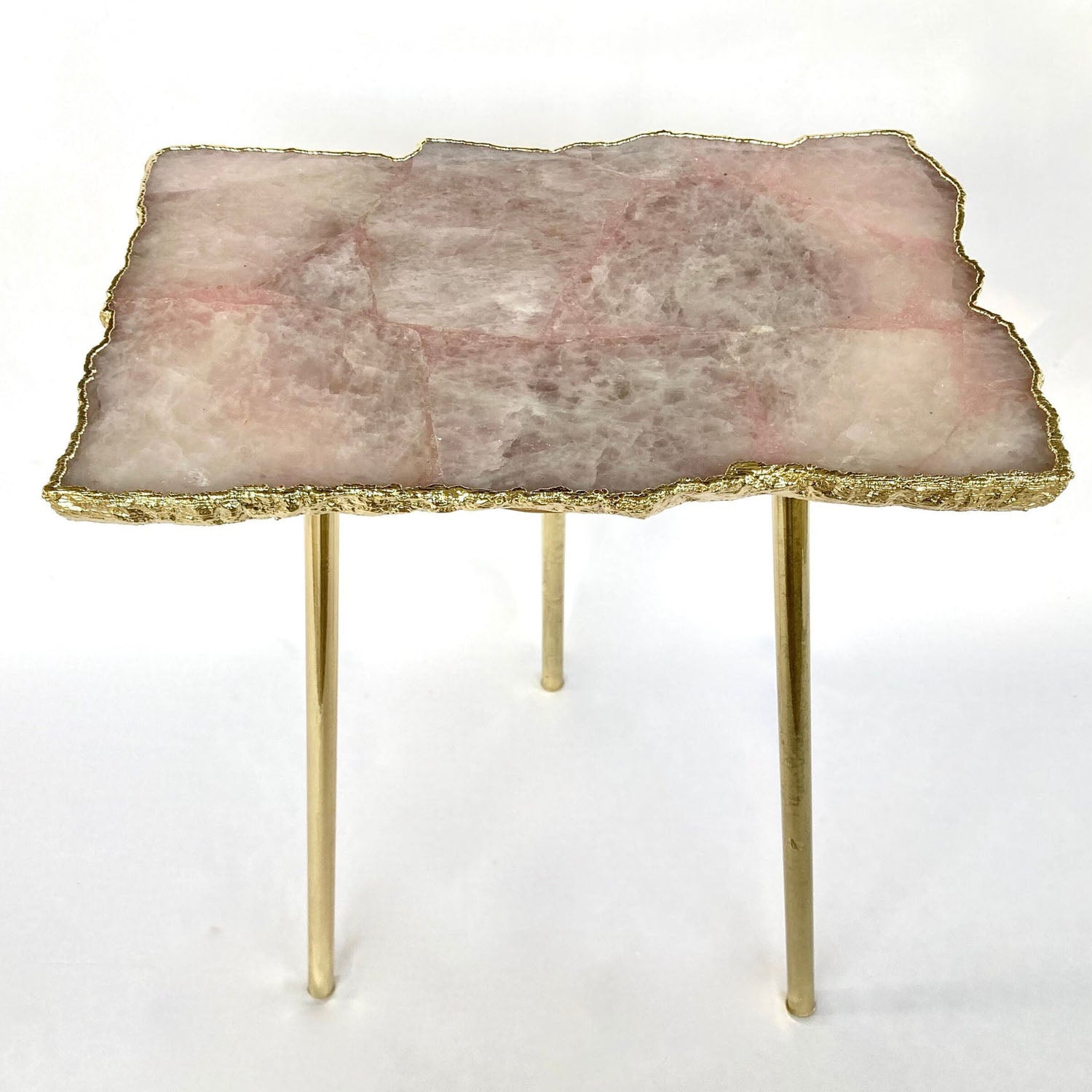 Mesa auxiliar/para bebidas/de centro de cuarzo rosa, ágata, cristal, piedra preciosa y cuarzo con borde orgánico